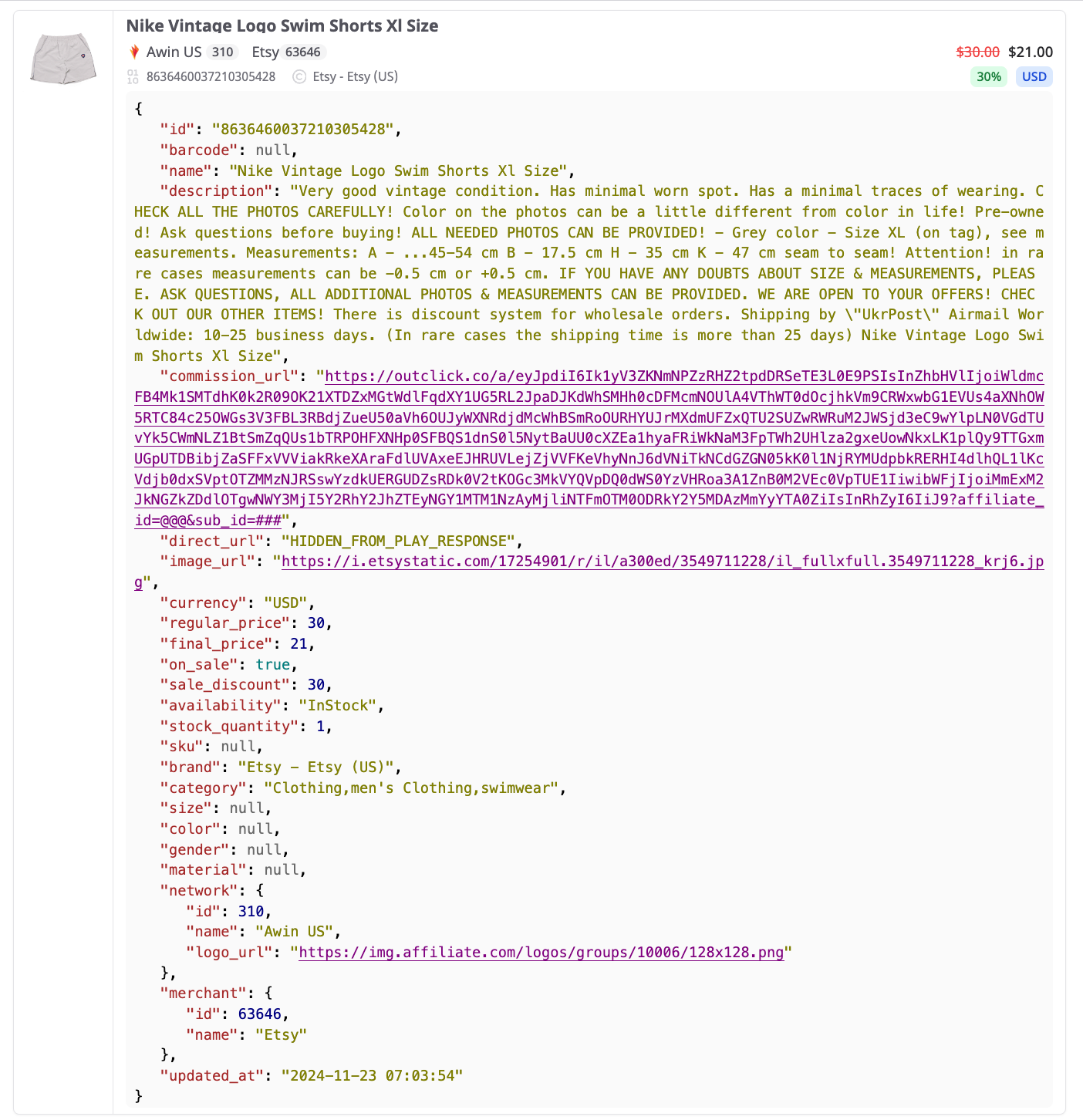 To test out Affiliate.com API capabilities and see the returned product information, check out the Query Builder here.