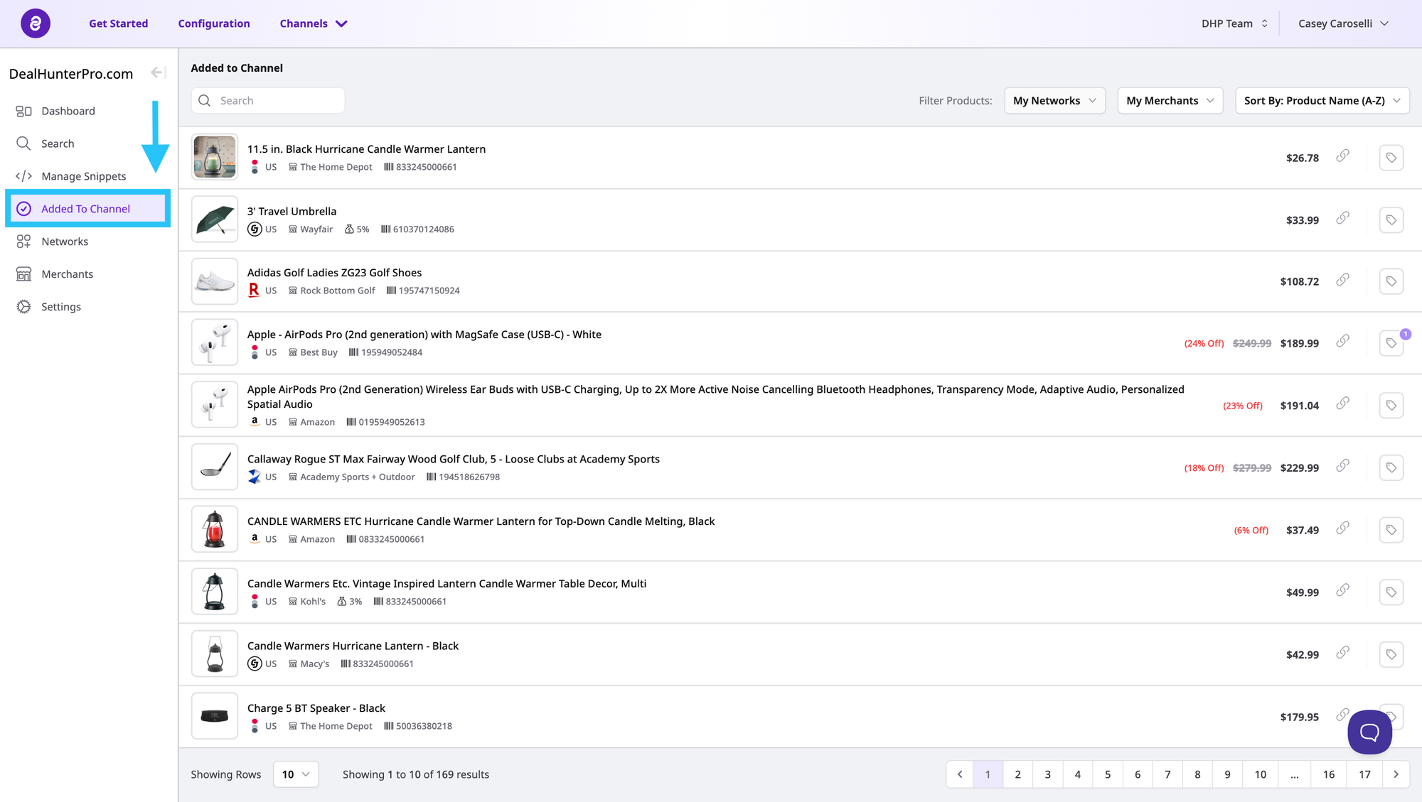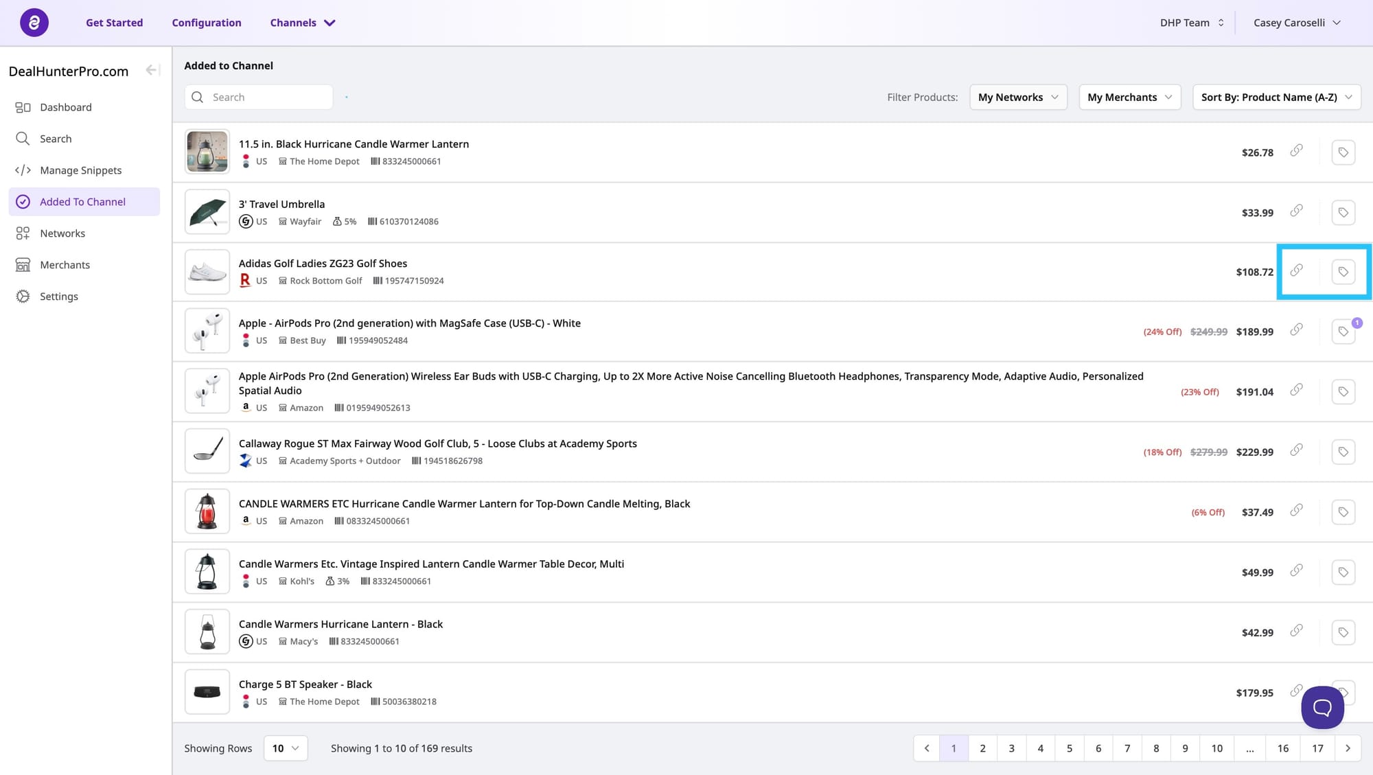 Plus, view updated information about each offer you have added to your Channel. This includes the product name, barcode, price, image and discount, if applicable.
