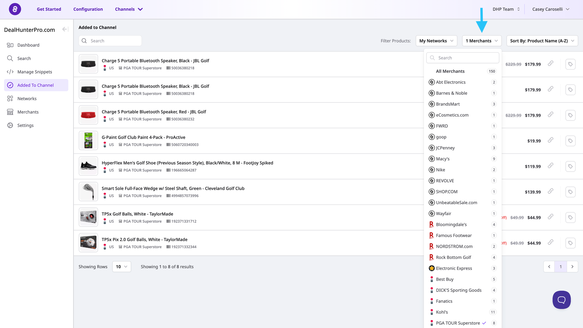 This allows you to view every network and merchant with offers included in your Channel.
