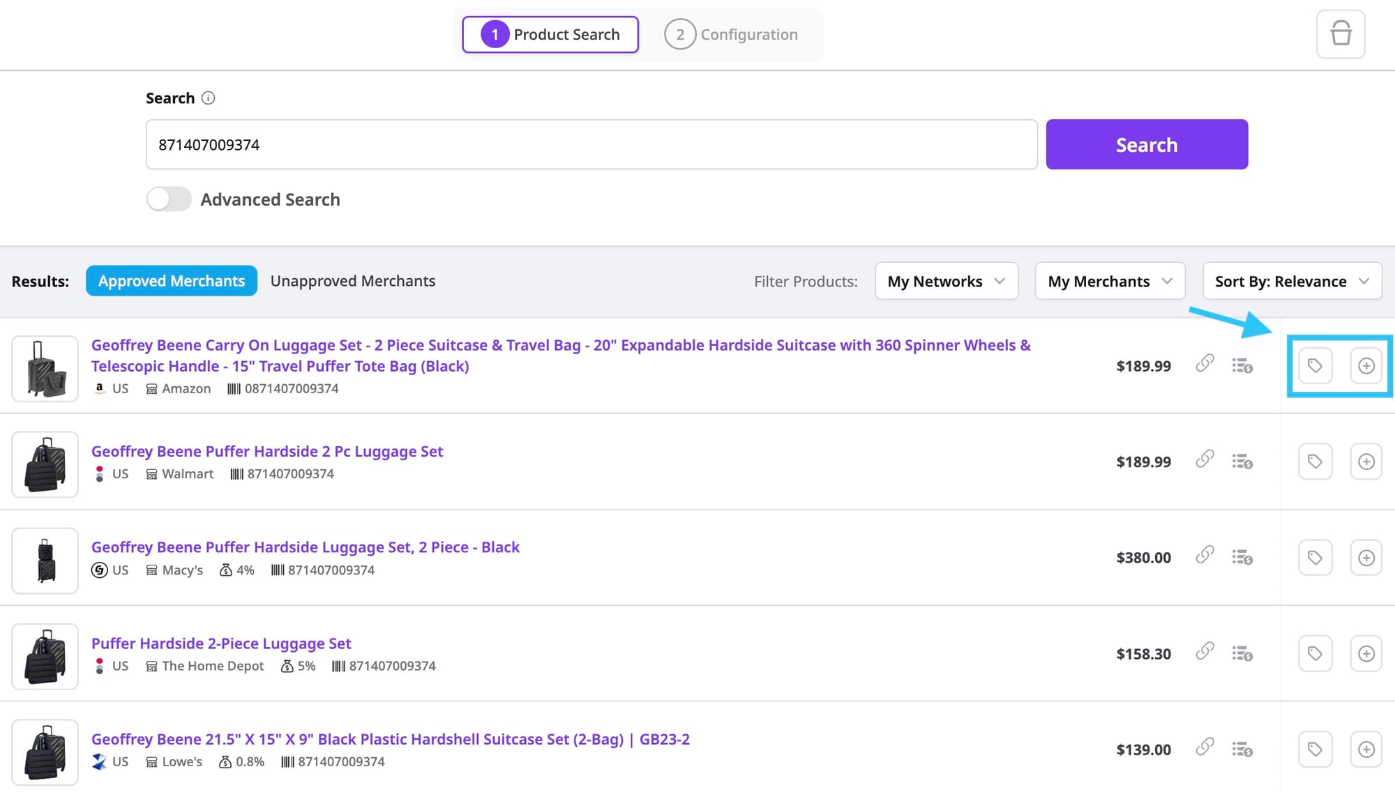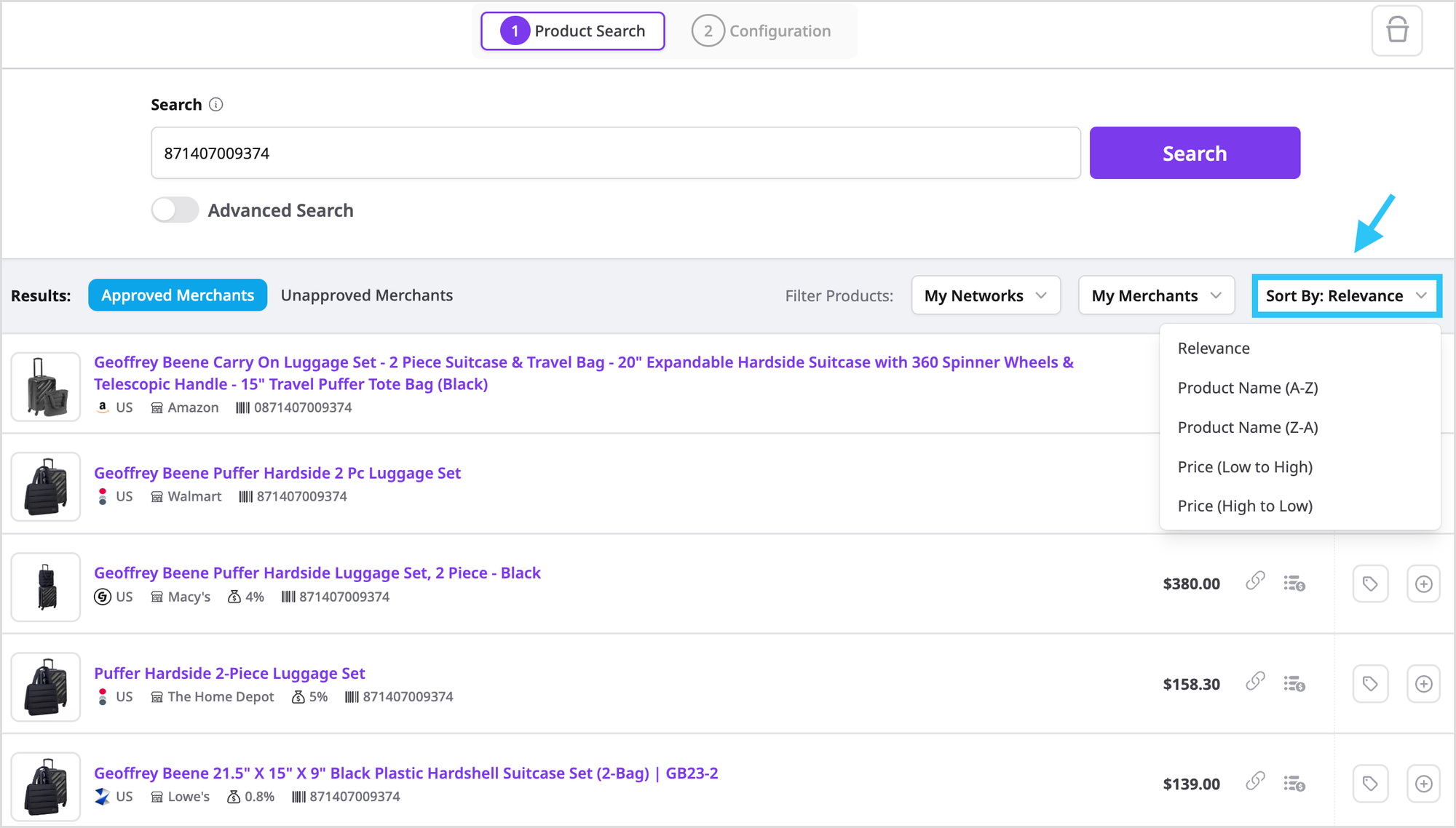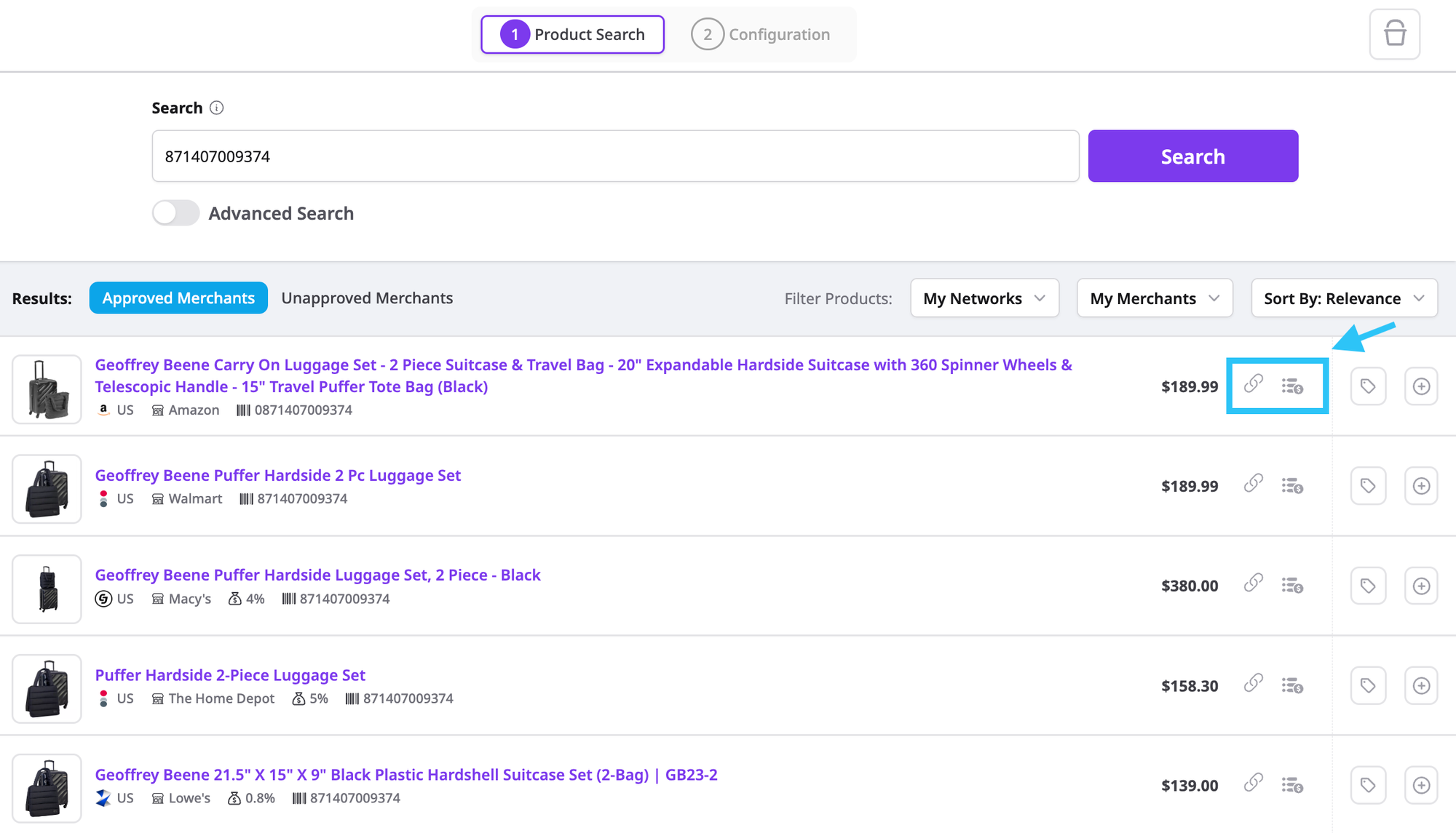 - Get Price Comparison Set: Instantly generate a Price Comparison Set to see which of your approved merchants are offering the same product.