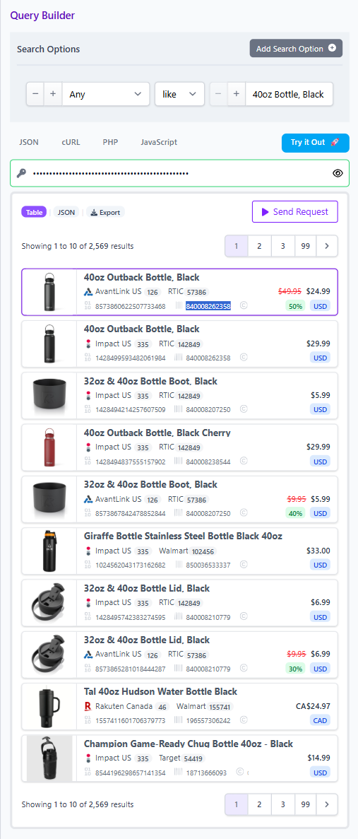 Barcode search is the simplest antidote. A product barcode, such as UPC, EAN, GTIN, or ISBN, is a universal identifier that can confirm two listings from different sources are the same product, even when titles differ. Affiliate.com is designed for this kind of work, normalizing product data across more than 30 networks, thousands of merchants, and a catalog that reaches into the billions of products, so you can match, filter, and compare with structured fields instead of guesswork.