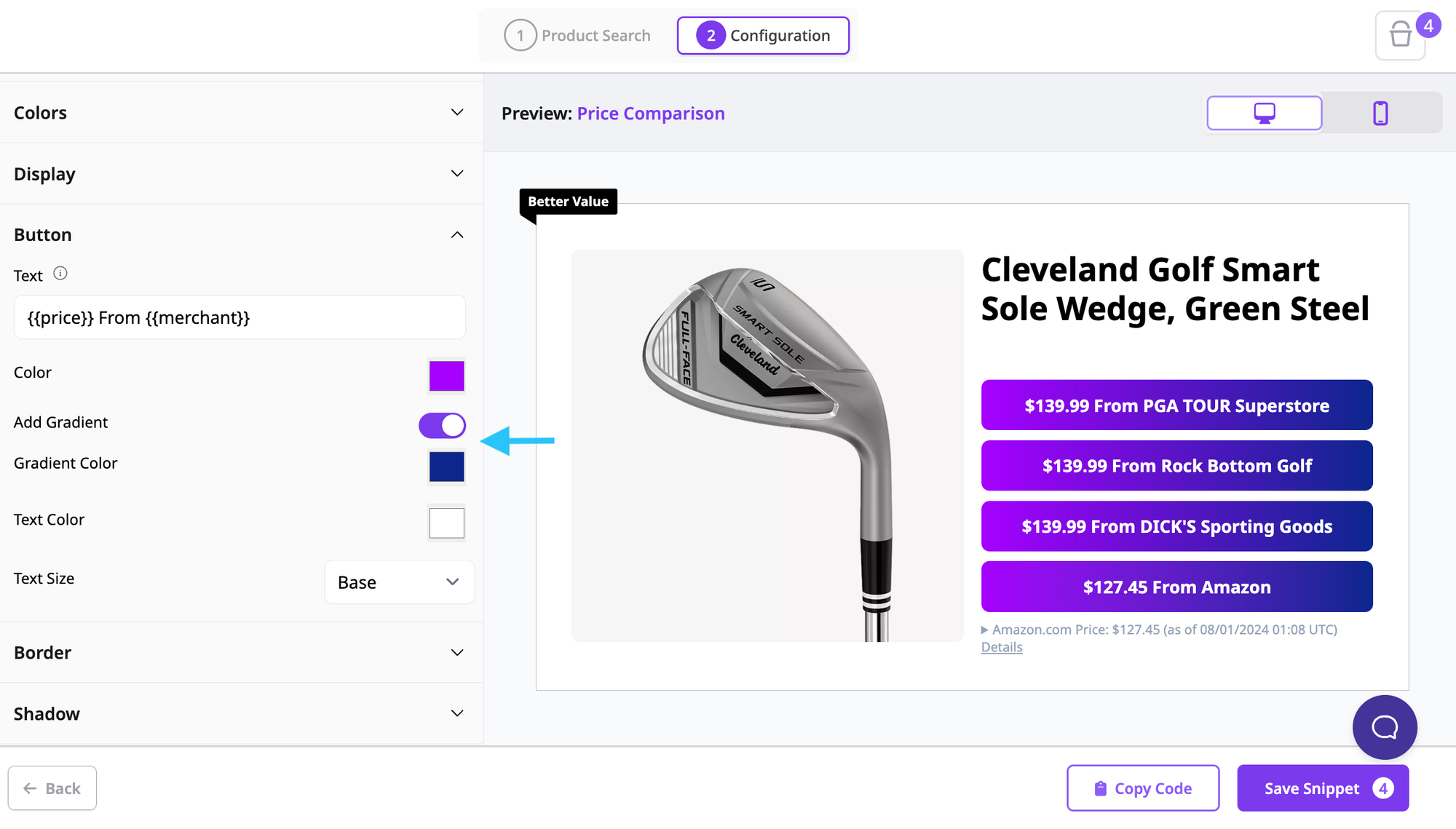 Add two colors to the Buy Buttons in the Snippet to create a gradient effect.