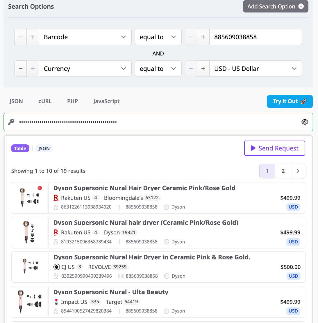 To create a Comparison Set, you can start with a keyword search in the Query Builder or through the Product Search API using product names, merchant names, or even brand names.