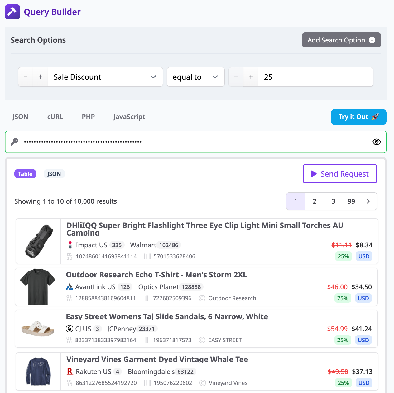 Using Affiliate.com’s API, which standardizes product data across affiliate networks, you can query products in multiple ways including by current discount.