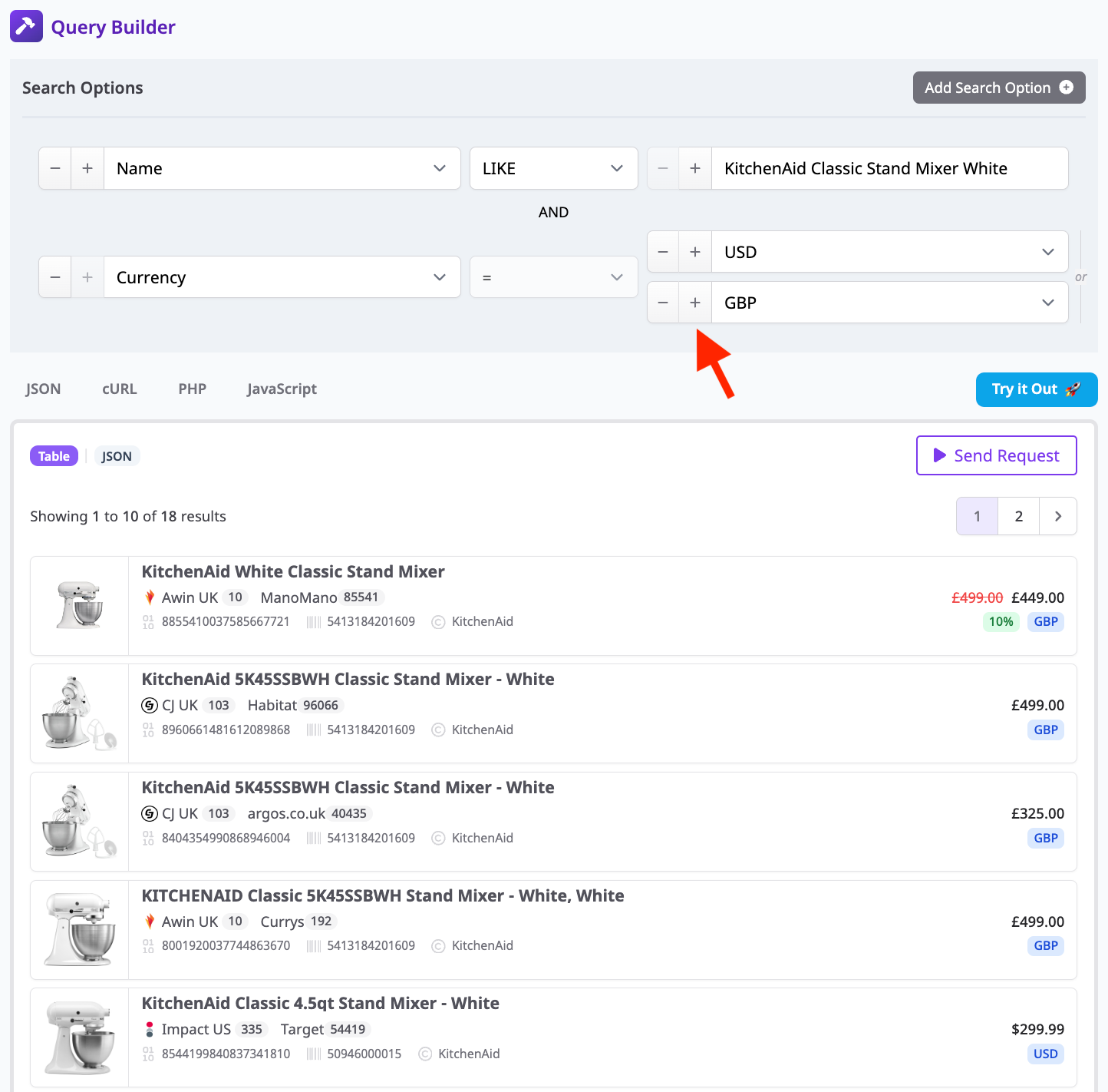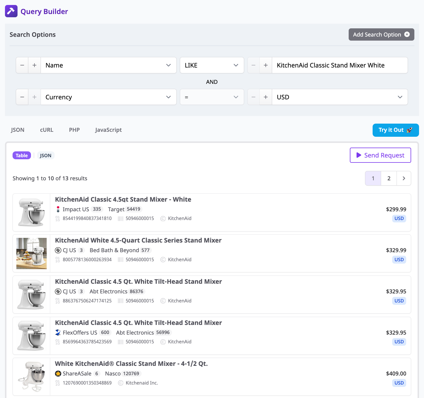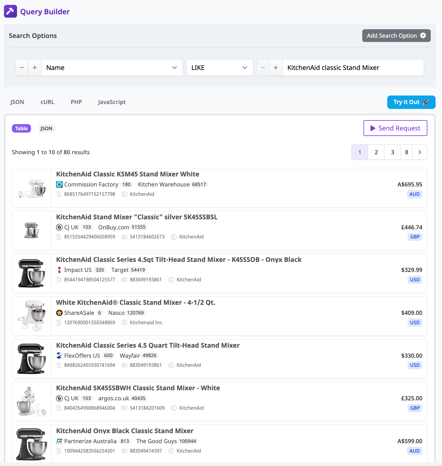 Affiliate.com's API Query Builder empowers you to fine-tune your searches using 20+ fields, helping you find exactly what you need.