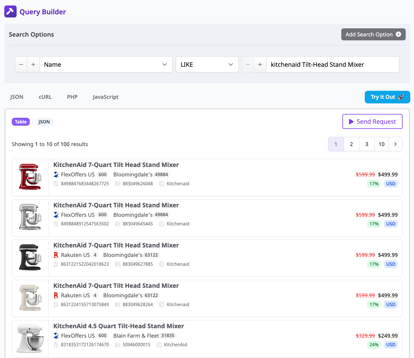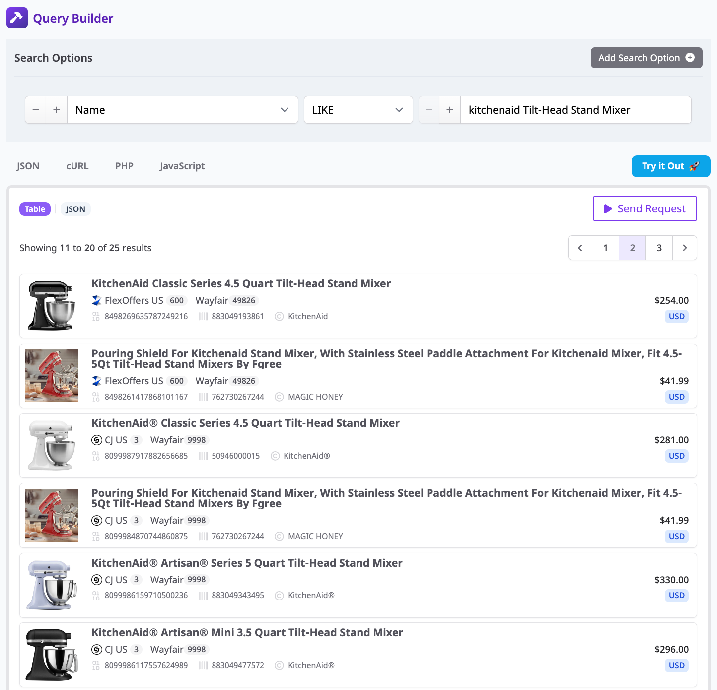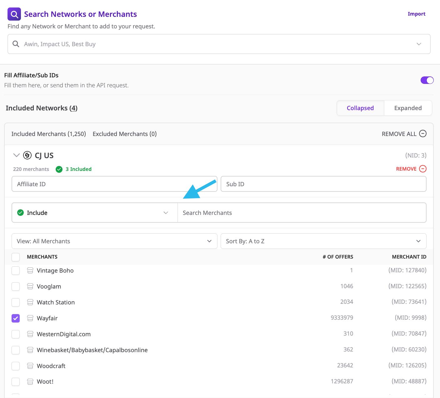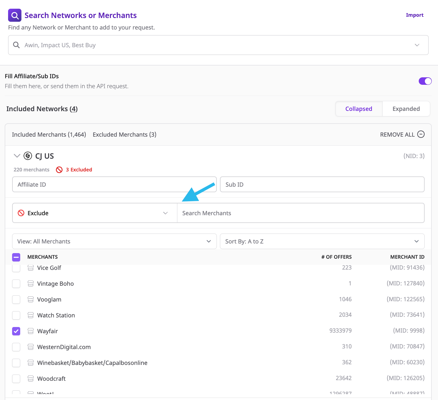 Querying Affiliate.com's API can be customized to include or exclude certain merchants.
