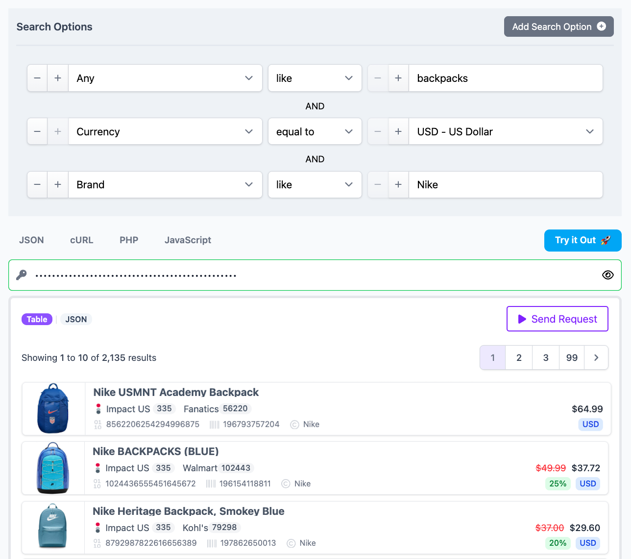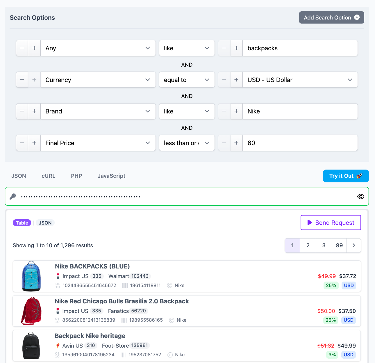 When working with product data, a single filter can already make a big difference. You might want to see products from a specific merchant or limit results to items under a certain price.