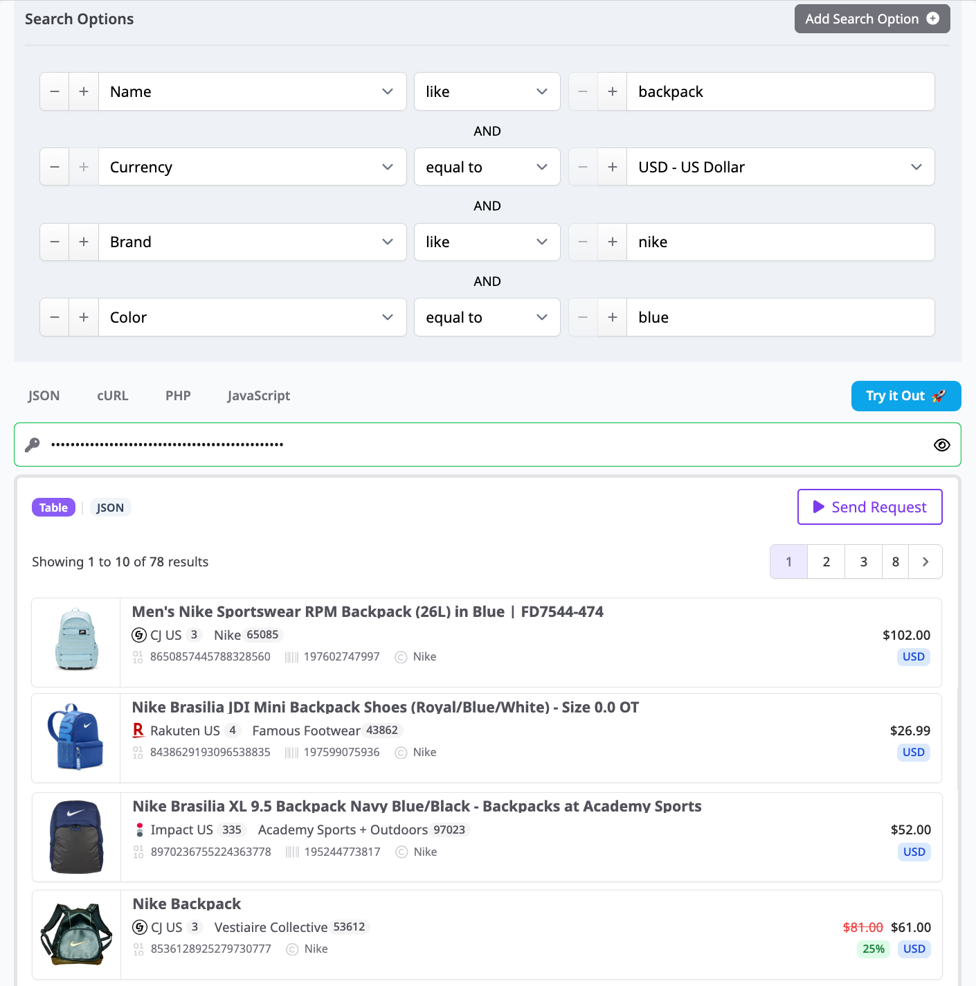 "fields": ["name","brand","color","size","final_price","image_url","merchant_name","commission_url","last_updated"],