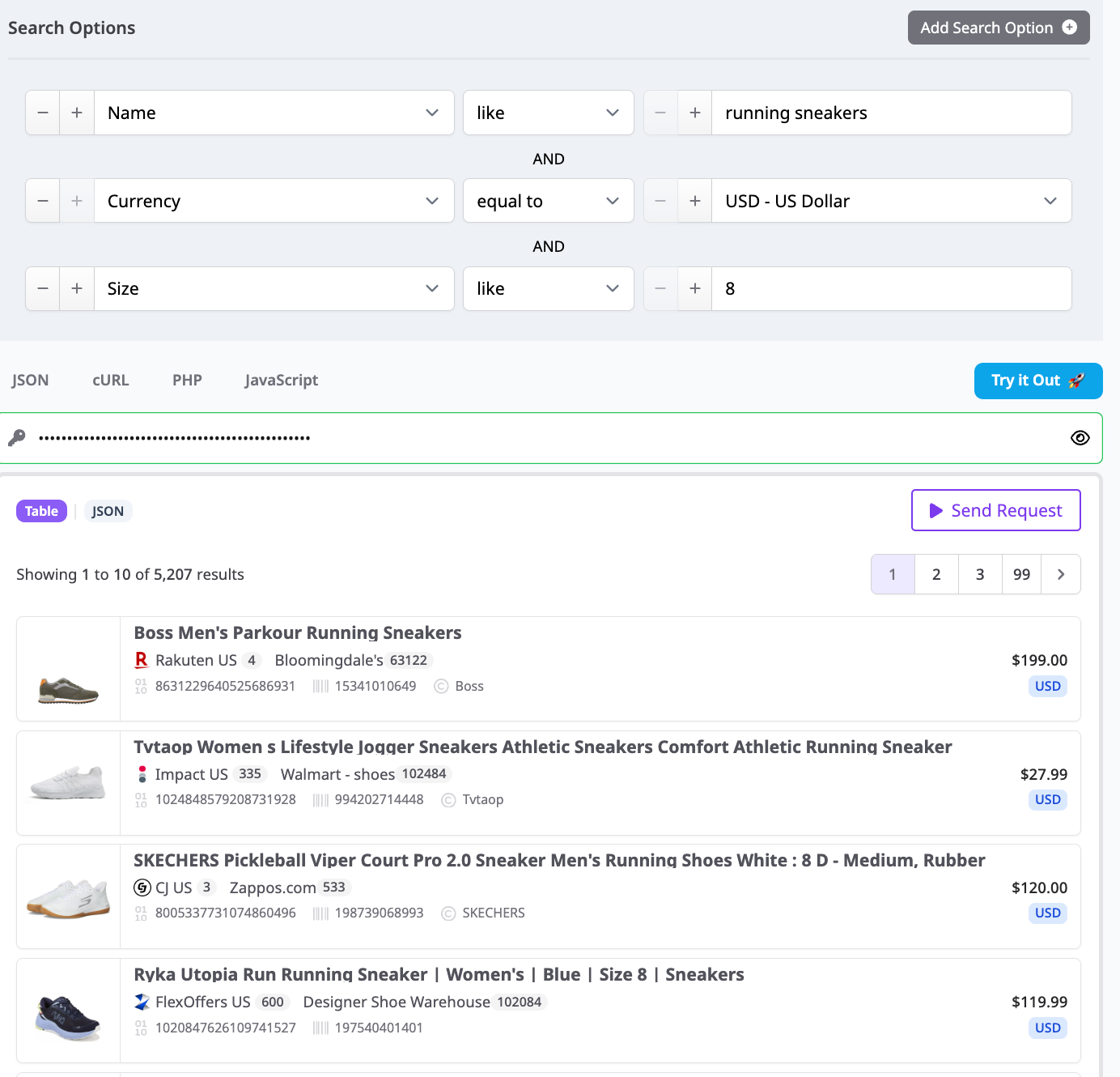 Tip: if you later want a true price comparison for one shoe, re run with barcode or MPN and turn deduplication off to show every matching offer.