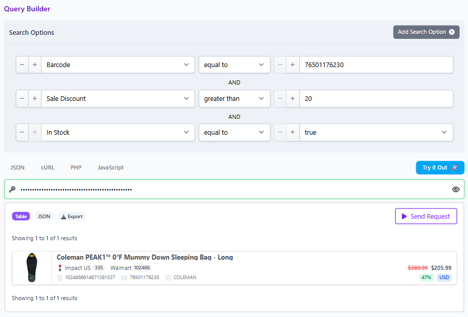 Explore the Product Data API in the visual Query Builder to test barcode first workflows, layer filters, and share results with your team. Start here.