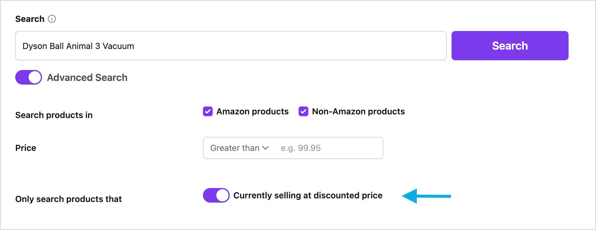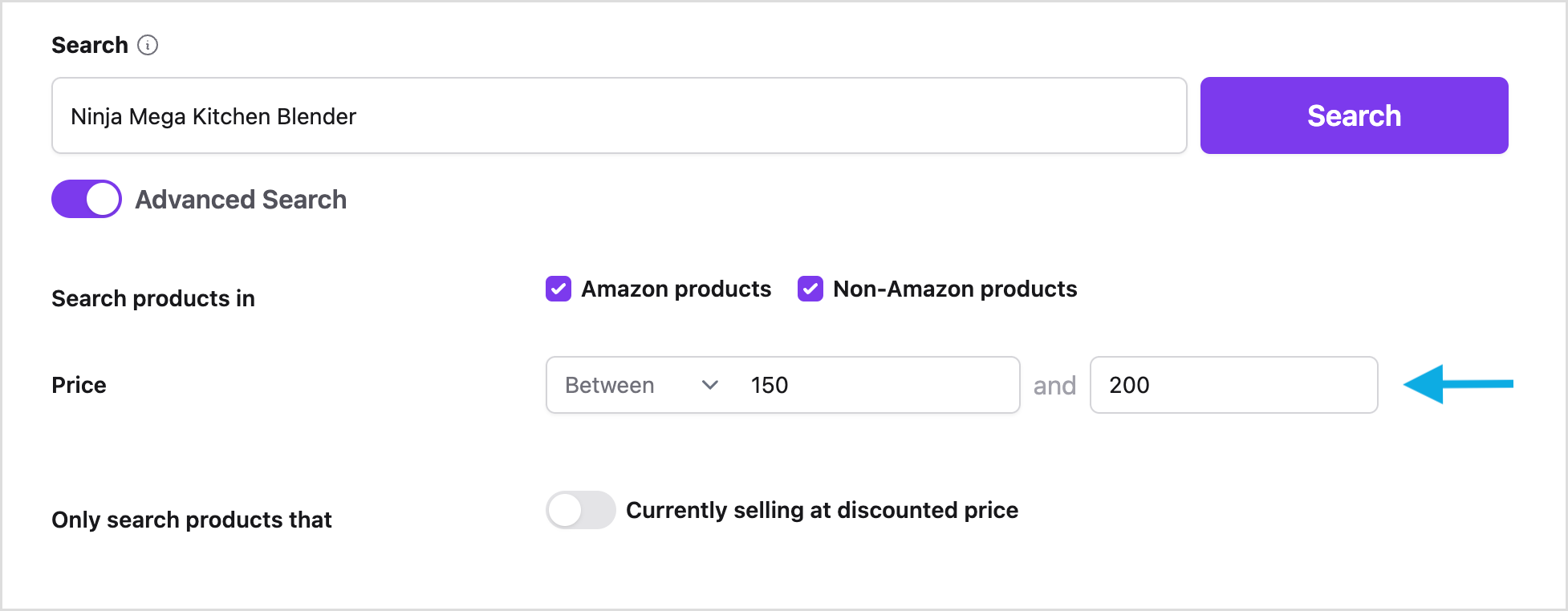 For instance, let's say you want to find a specific blender between $150-$200. This search filter allows you to easily do that.