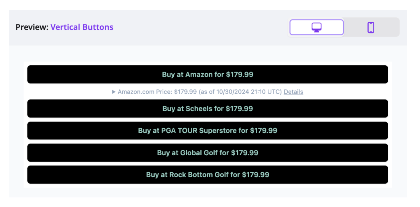 Button only layouts showcase where to buy without additional product chrome. They excel when creative owns the hero image and you need clean merchant calls to action.