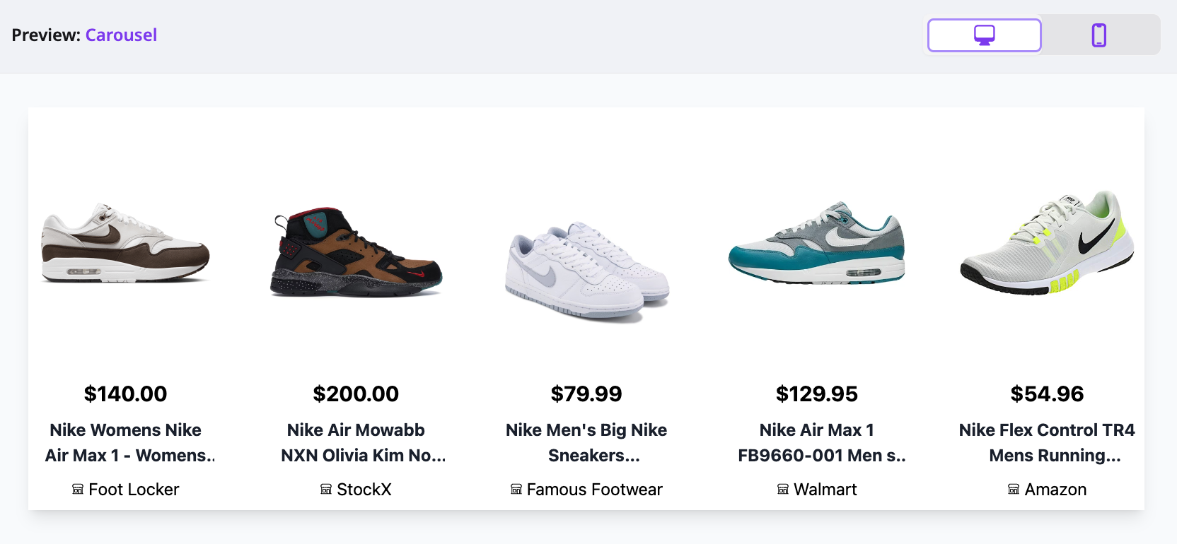 Lets readers scroll through multiple products while conserving space. Carousels work well on mobile and in mid article slots.