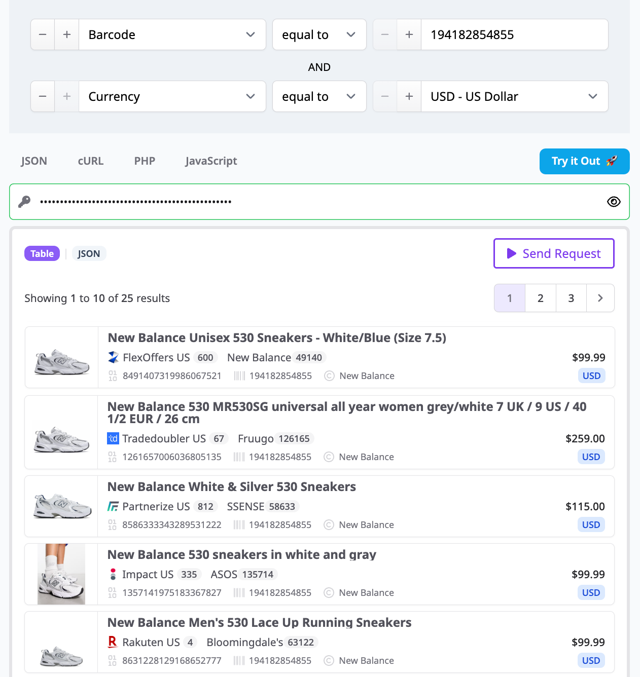 When deduplication is off, the response includes all matching variants and offers, giving you full flexibility in how you choose to display them.