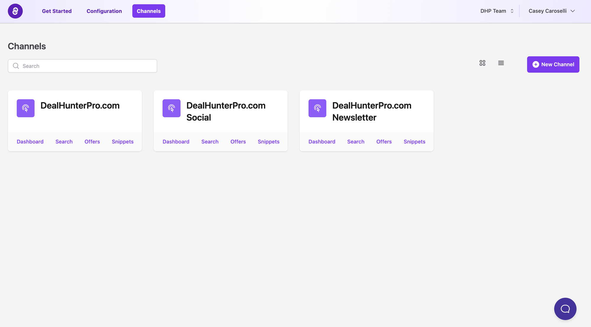 Using the Affiliate.com platform, a Team Admin creates a Team and adds the Channels where affiliate offers will be promoted. A channel can be a website, blog, social media, email, or any place in which affiliate offers will be added.