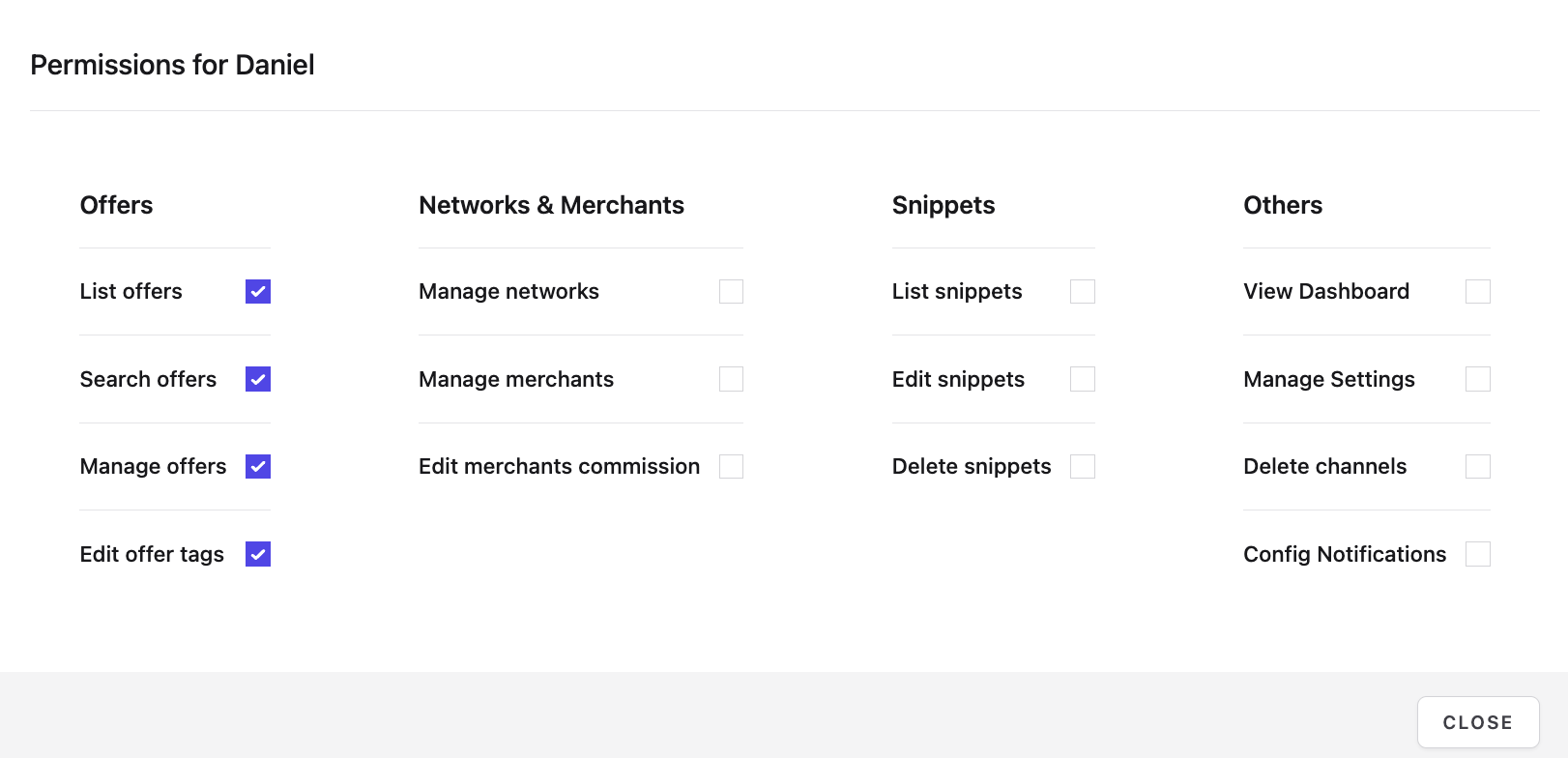 Team Member 2 may be able to add or edit affiliate offers, but not have permission to delete any Channels.